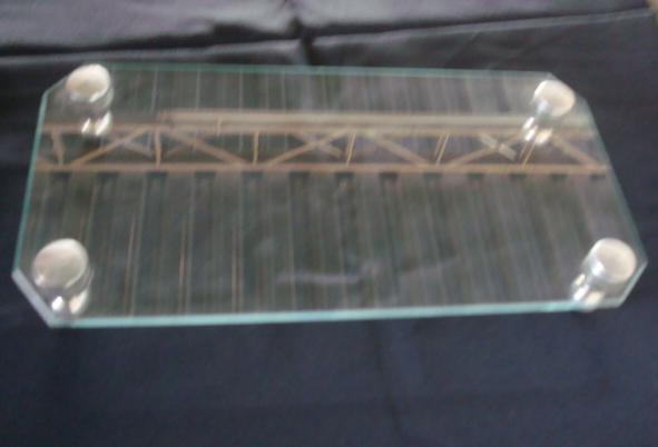 Peça de vidro retangular c/pé prata pequeno