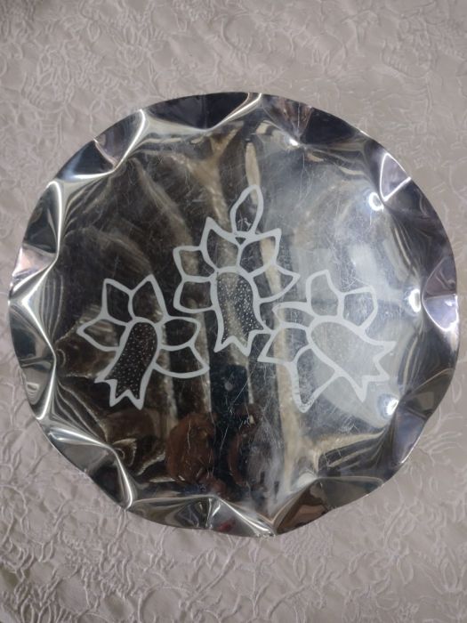 Bandeja de inox trabalhada flores 3